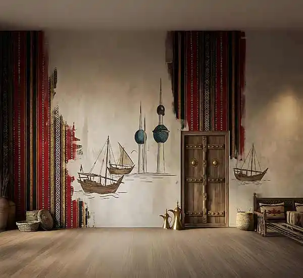 دقة طباعة عالية: تدرجات لونية دقيقة وتفاصيل زخارف تراثية تمنح الخلفية مظهراً واقعياً وأنيقاً داخل الصورة.