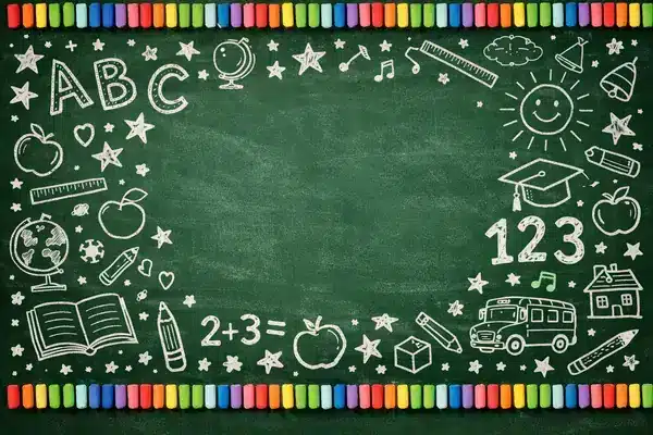 خلفية مدرسية تعليمية مميزة بلوح خضراء مليء برسومات الأطفال الكرتونية من أحرف ABC وأرقام وتفاحات ومبانٍ ومواصلات وزينة ملونة من الطباشير. إبداع تعليمي مرح. توفر هذه الخلفية ألواناً زاهية وتفاصيل دقيقة تظهر بوضوح في الصور. سهولة التنظيف والتخزين تجعلها استثماراً ذكياً لأي استوديو.