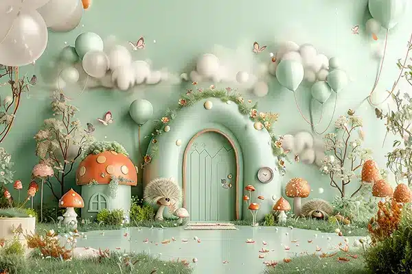 خلفية تصوير بيت الفطر – Mushroom House Photography Backdrop